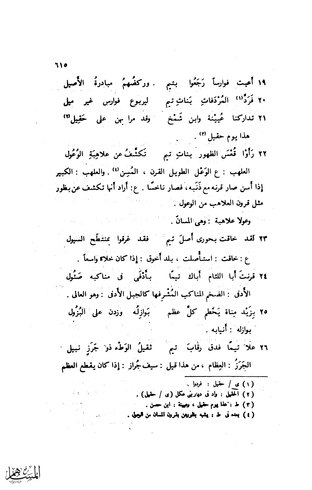 26 علا تيمًا فدق رقاب تيم ... ثقيل الوطء ذو جرزٍ نبيل