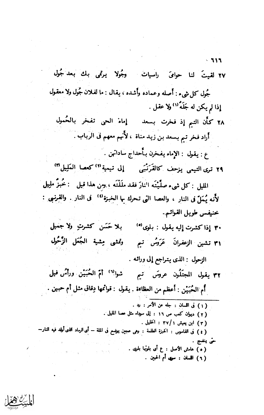 29 ترى التيمي يزحف كالقرنبي ... إلى تيمية كعصا المليل