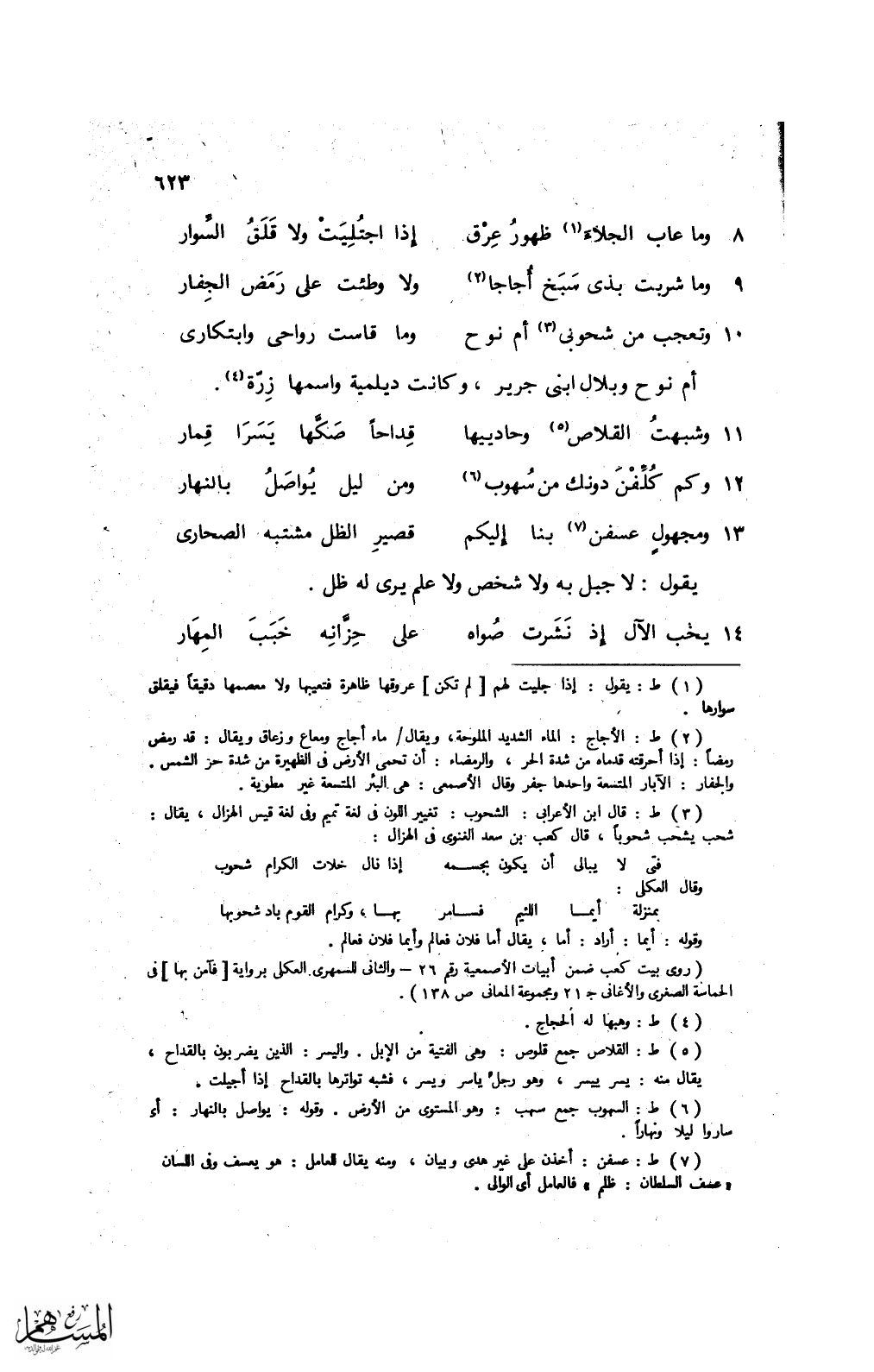 13 ومجهول عسفن بنا إليكم ... قصير الظل مشتبه الصحاري