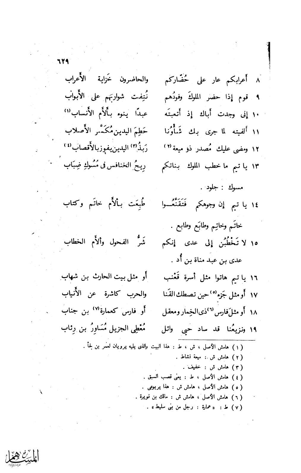 14 يا تيم إن وجوهكم فتقنّعوا ... طبعت بالأم خاتم وكتاب