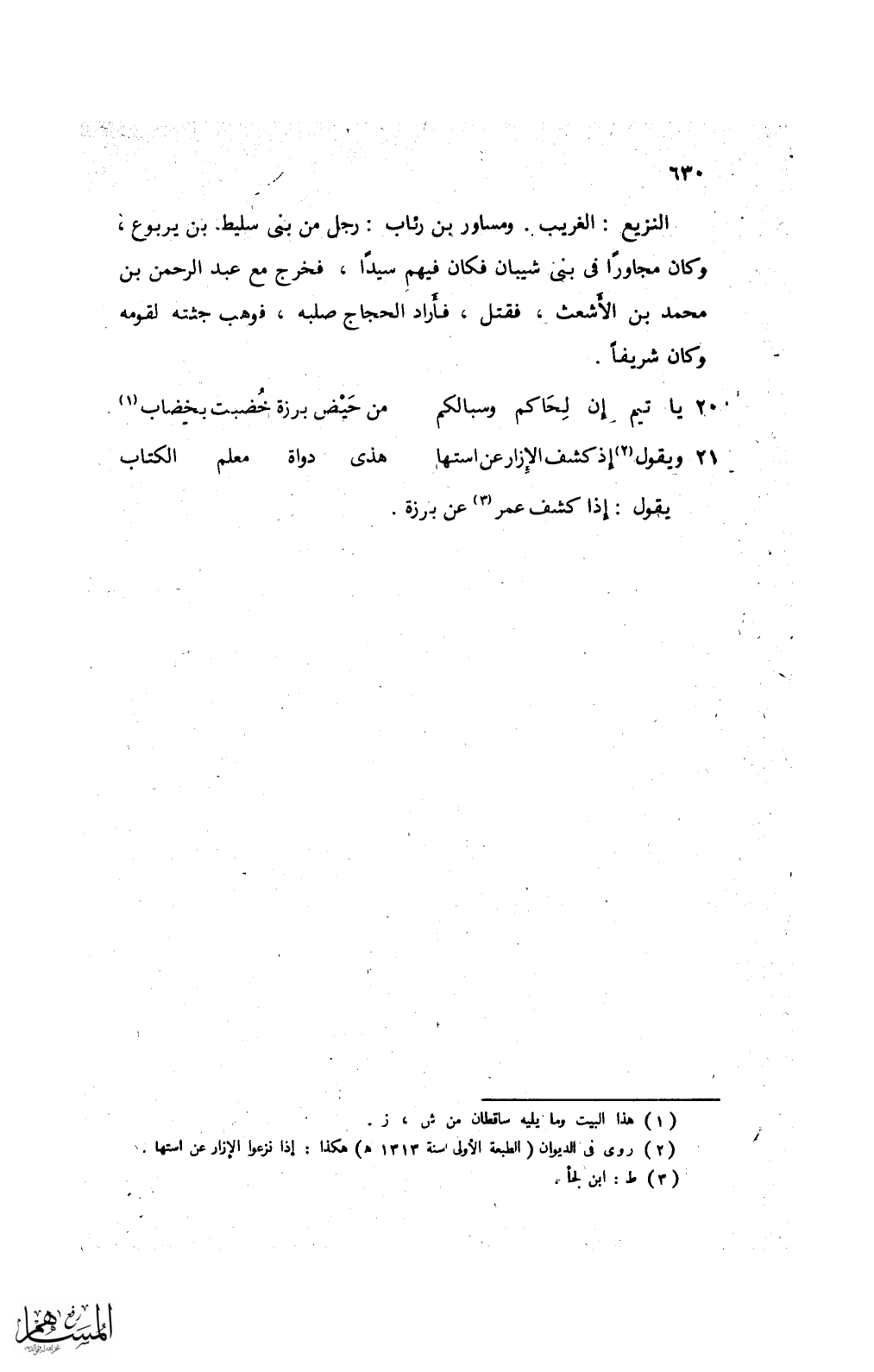 20 يا تيم إن لحاكم وسبالكم ... من حيض برزة خضبت بخضاب