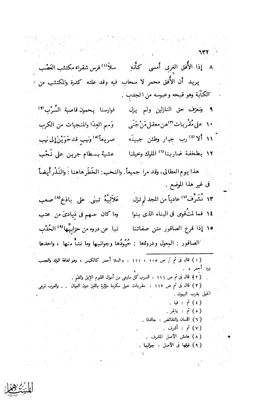 8 إذا الأفق الغربى أمسى كأنه ... سلا فرس شقراء مكتئب العصب