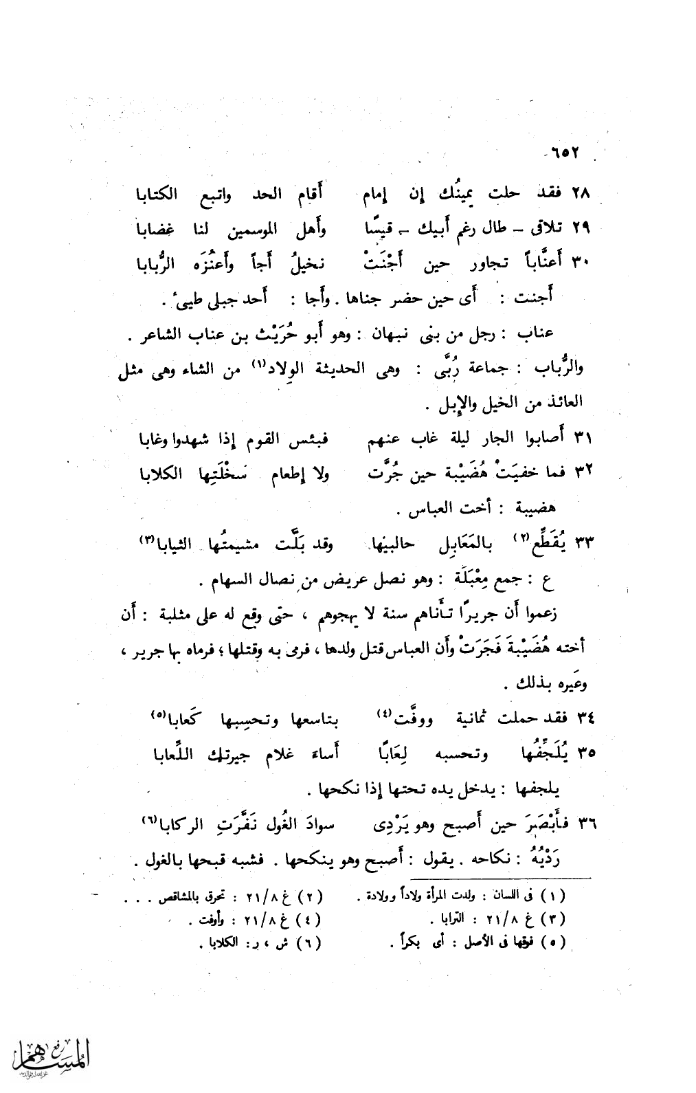 34 فقد حملت ثمانية ووفت ... بتاسعها وتحسبها كعابا