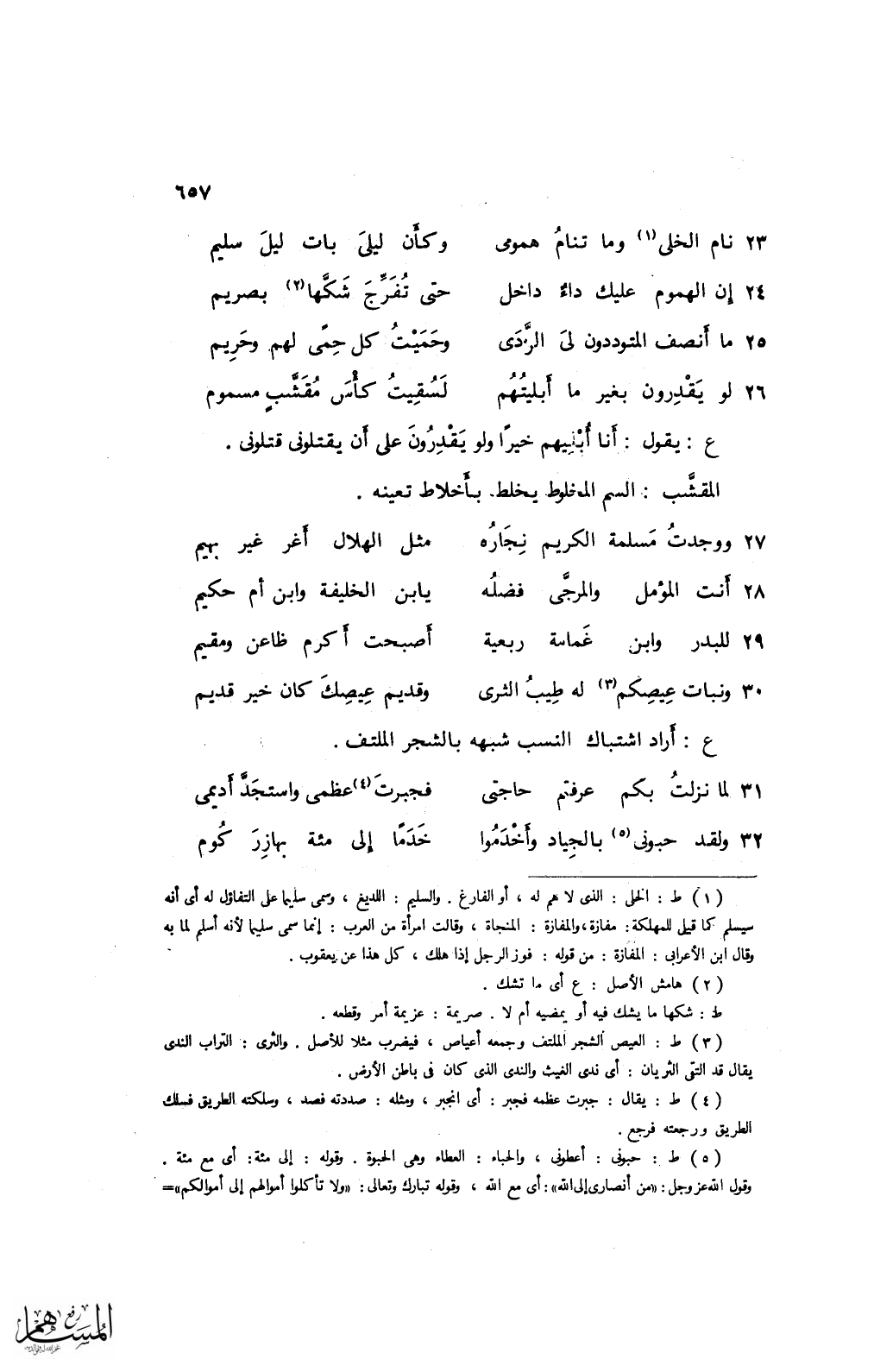 23 نام الخلى وما تنام همومي ... وكأن ليلي بات ليل سليم