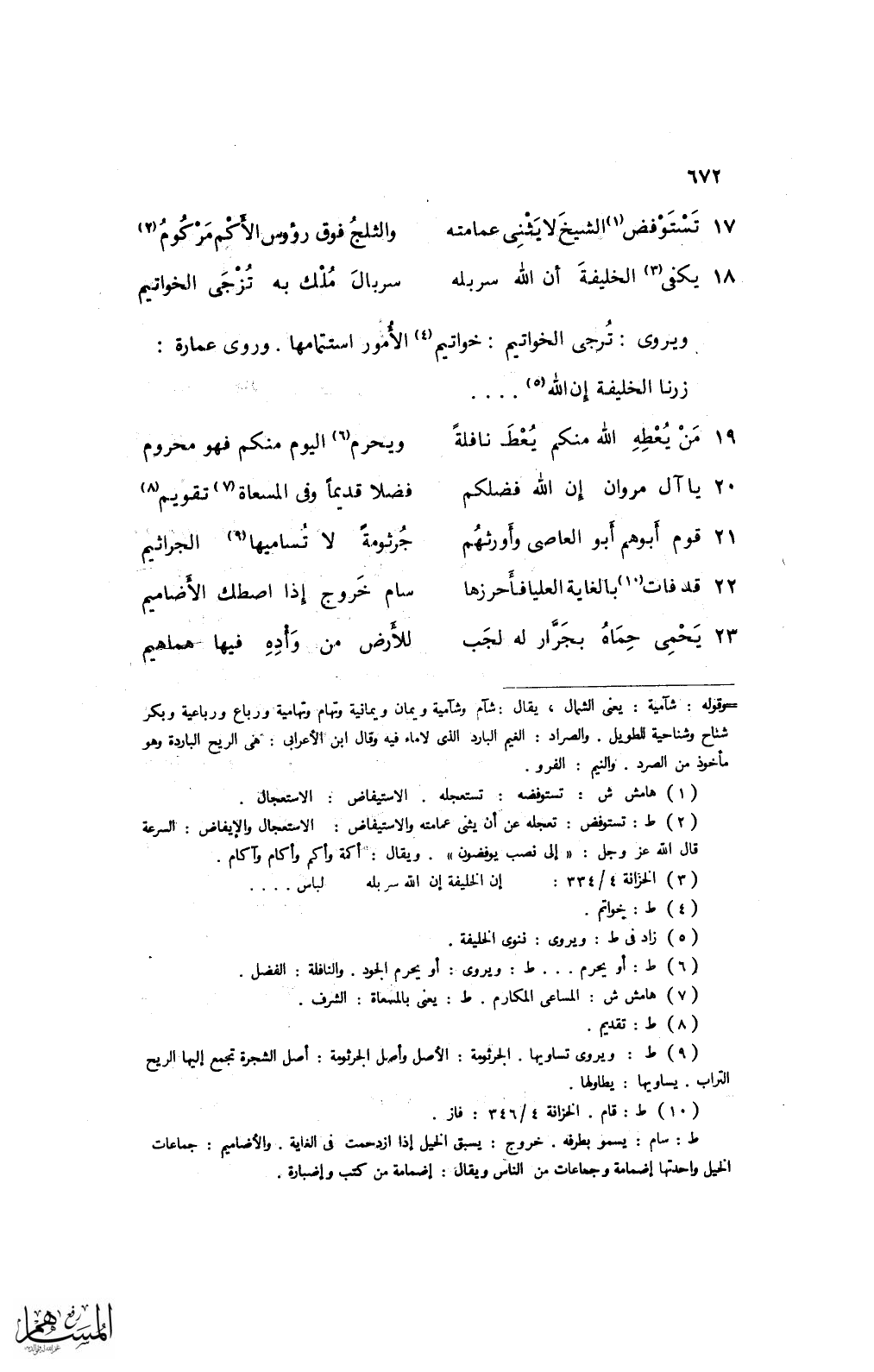 17 تستوفض الشيخ لا يثنى عمامته ... والثلج فوق رؤوس الأكم مركوم