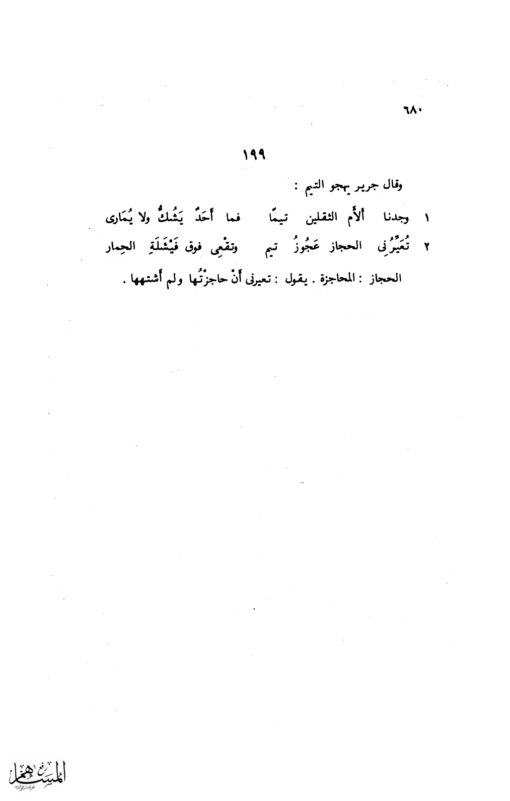 1 وجدنا ألأم الثقلين تيمًا ... فما أحد يشكّ ولا يمارى