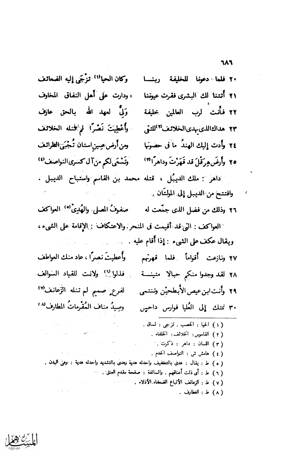 20 فلما دعونا للخليفة ربنا ... وكان الحيا تزجى إليه الضعائف