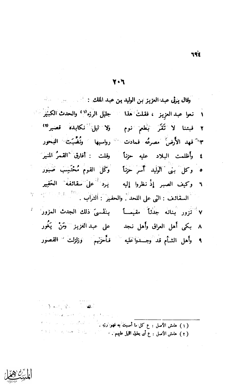 وقال يرثي عبد العزيز بن الوليد بن عبد الملك: