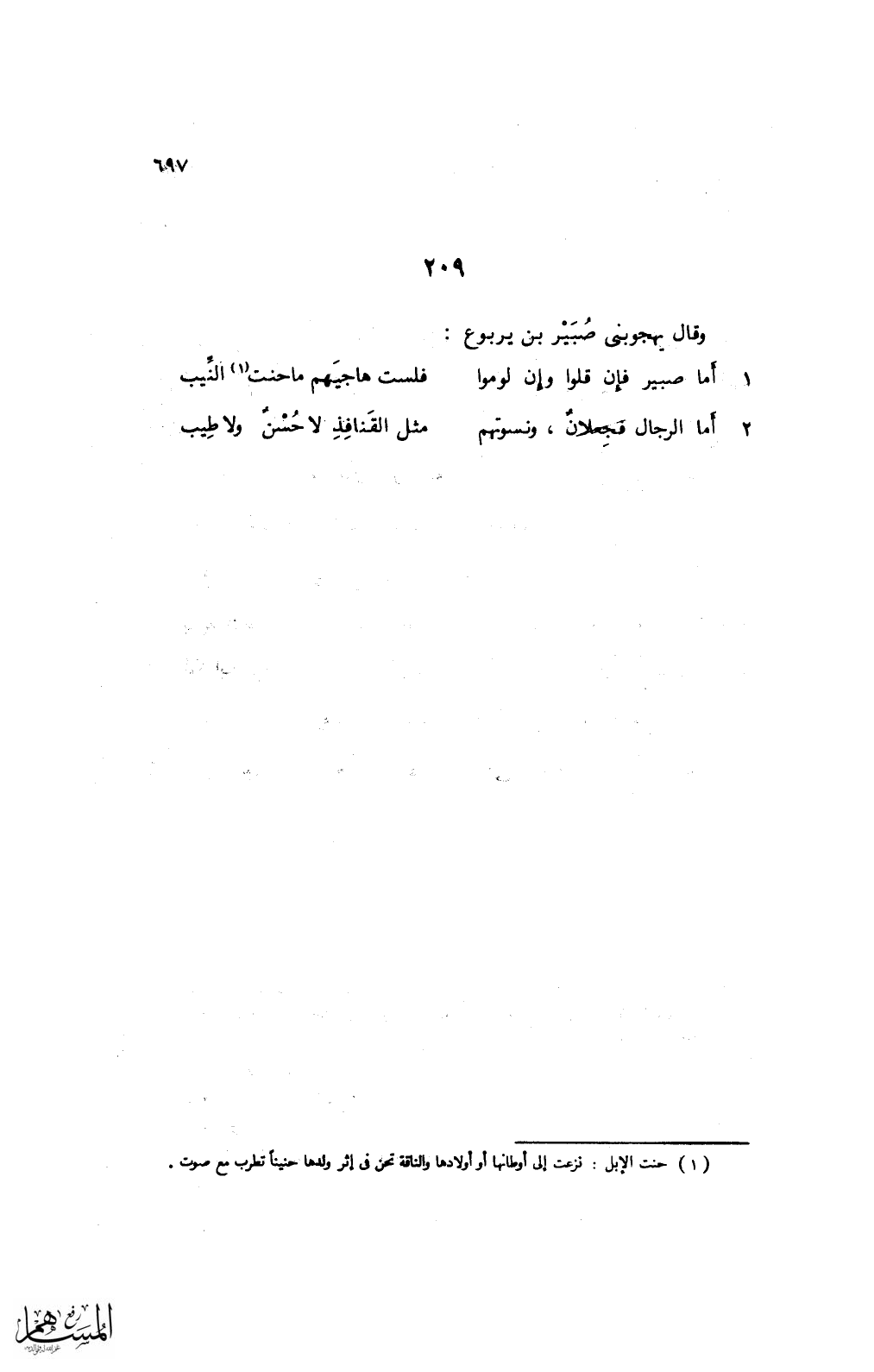 1 أما صبير فإن قلوا وإن لوموا ... فلست هاجيهم ما حنت النِّيب
