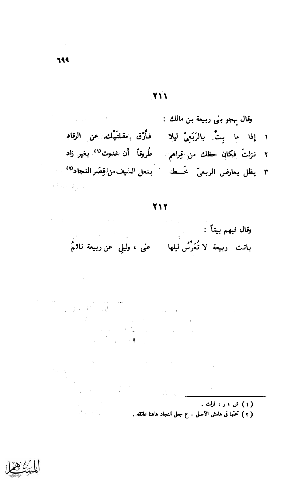1 إذا ما بتَّ بالربعىّ ليلا ... فأرّق مقلتيك عن الرقاد