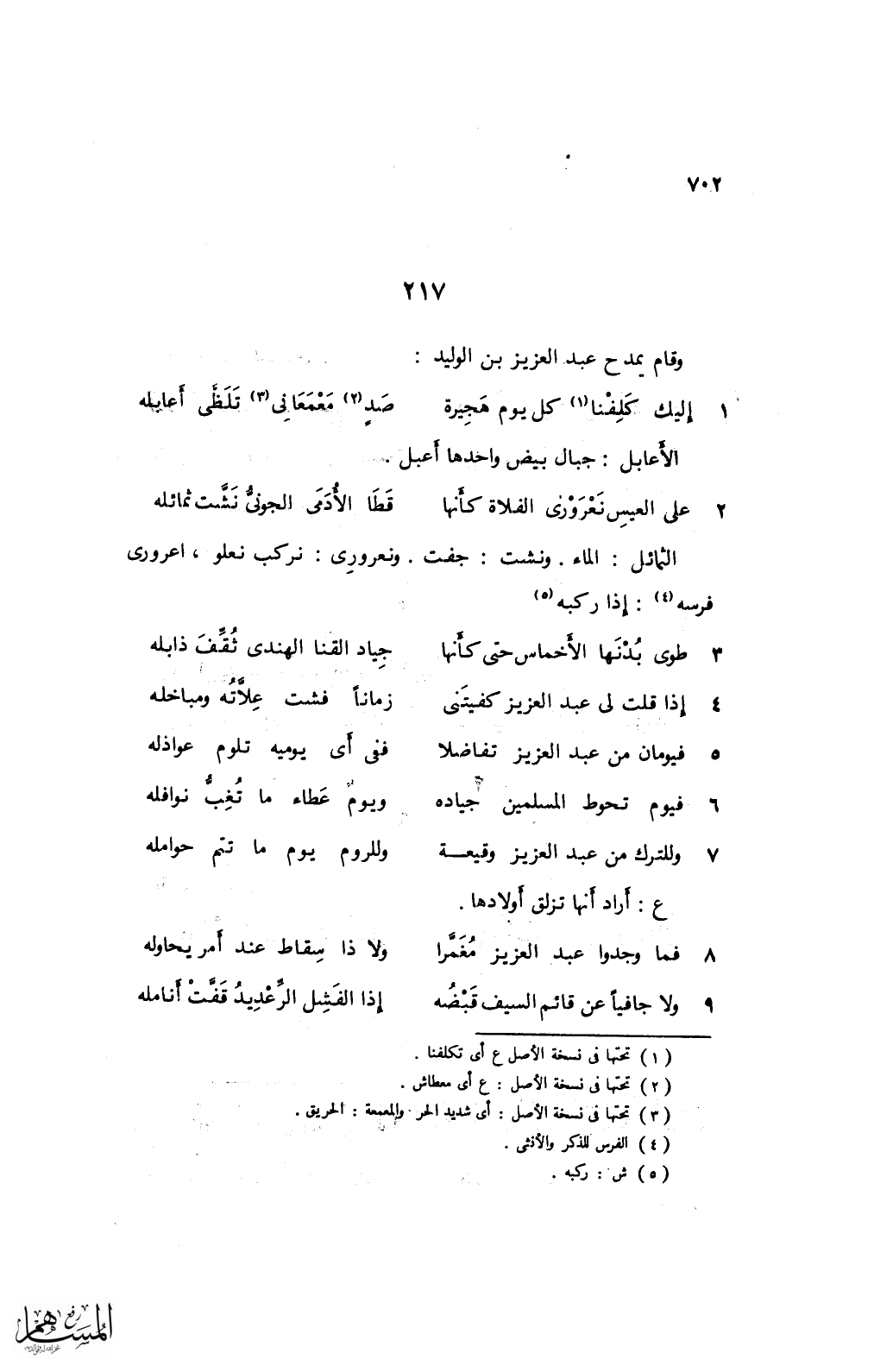 7 وللترك من عبد العزيز وقيعة ... وللزوم يوم ما تتم حوامله