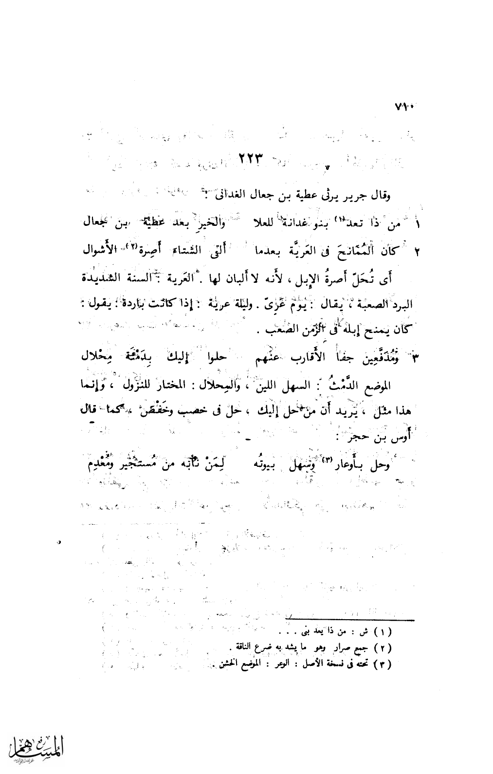 2 كان الممانح فى العريَّة بعدما ... ألقى الشتاء أصرة الأشوال