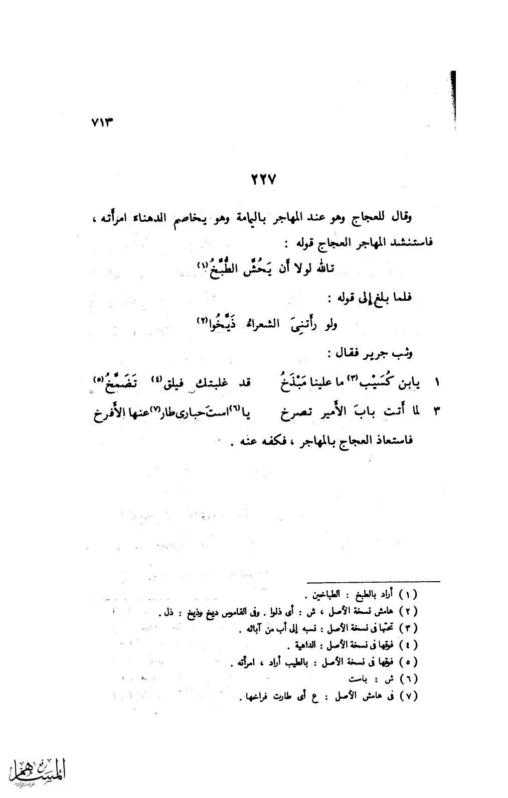 وقال للعجاج وهو عند المهاجر باليمامة وهو يخاصم الدهناء امرأته، فاستنشد المهاجر العجاج قوله: