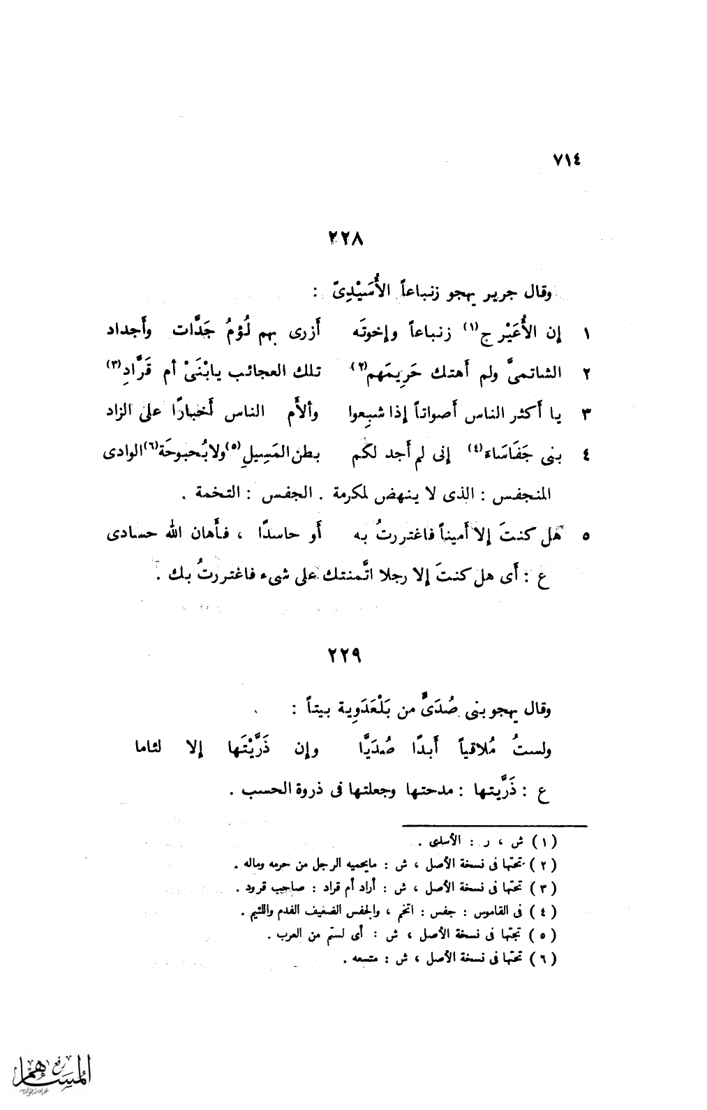 وقال جرير يهجو زنباعًا الأسيدىّ: