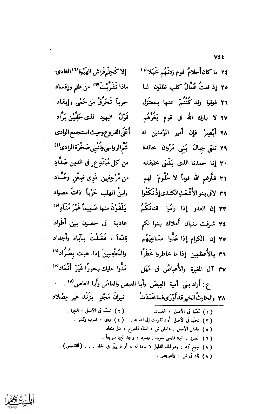 33 إن العدو إذا راموا قناتكم ... يلقون منها صميمًا غير منآد