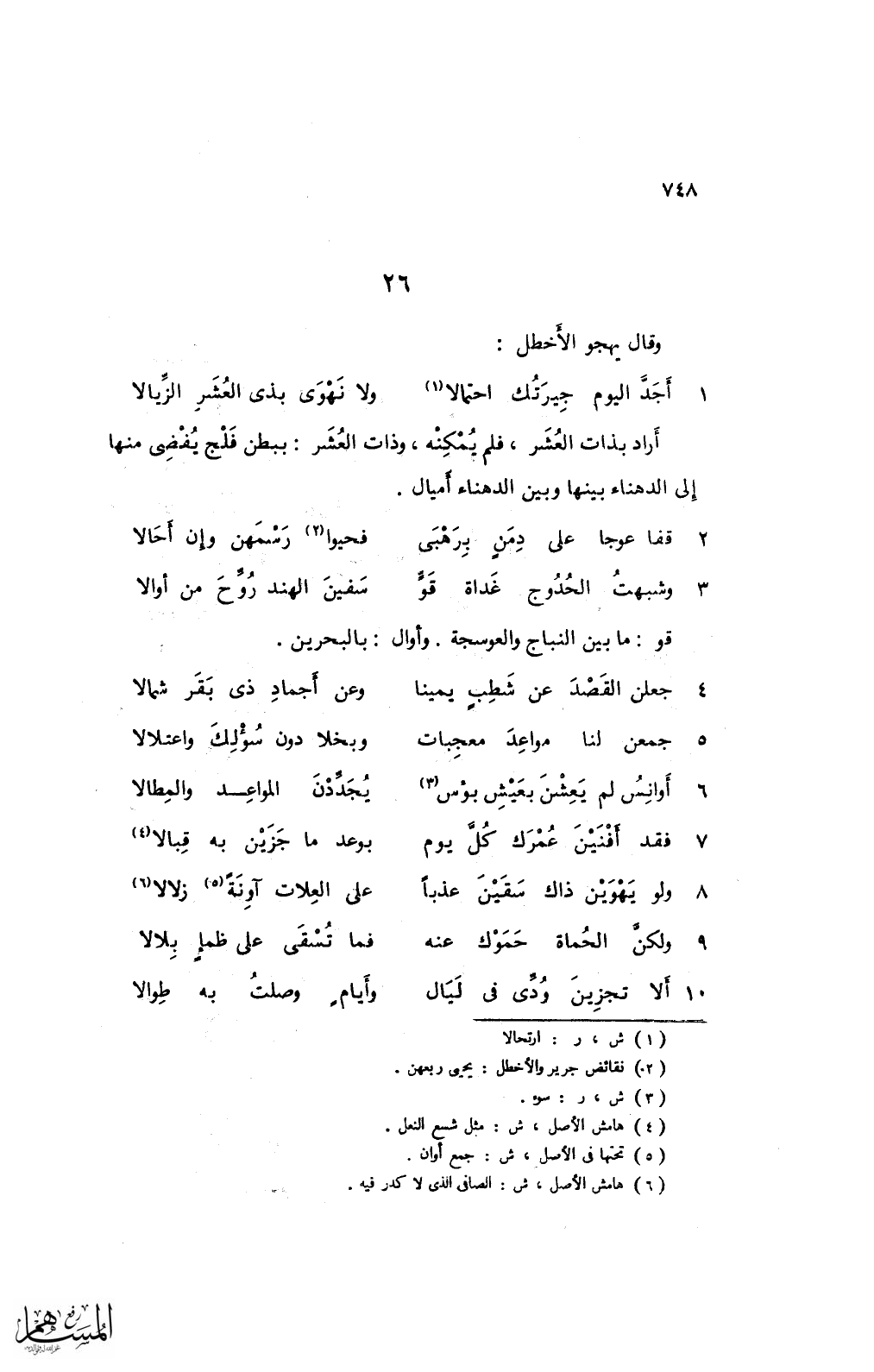 وقال يهجو الأخطل: