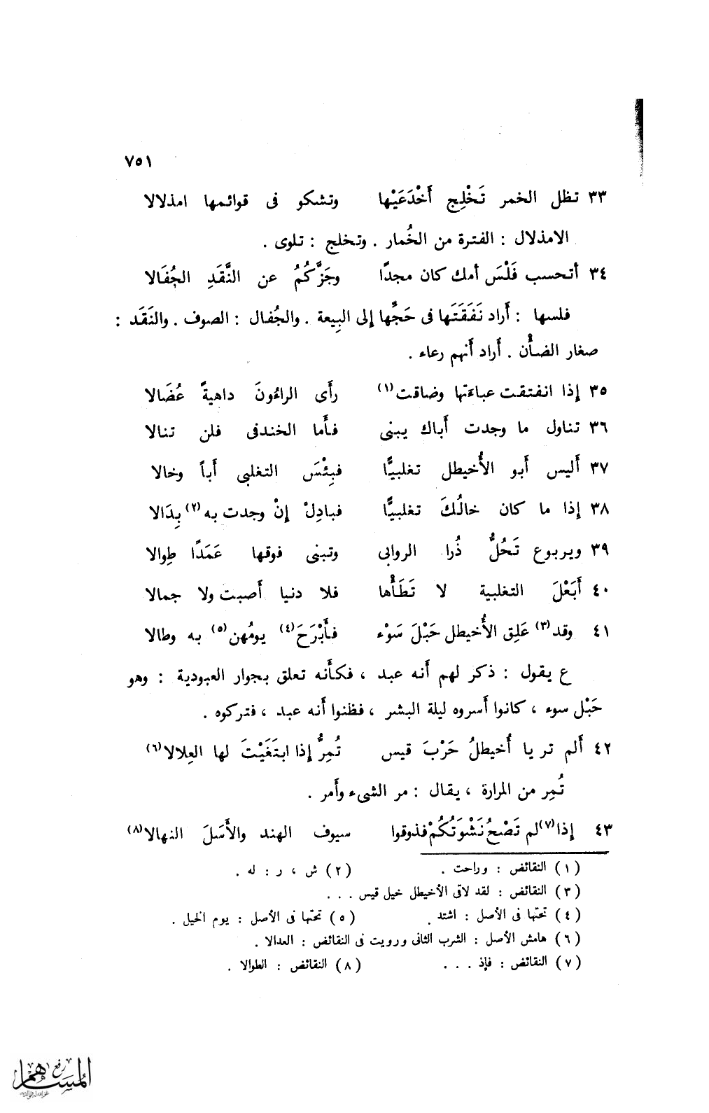 34 أتحسب فلس أمك كان مجدًا ... وجزَّكم عن النَّقد الجفالا