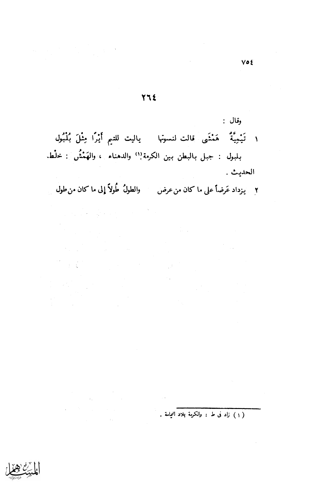بلبول: جبل بالبطن بين الكرمة. والدهناء، والهمش: خلط الحديث.