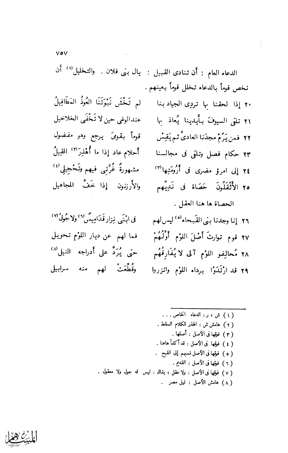 22 فمن يرم مجدنا العادىَّ ثم يقس ... قومًا بقومى يرجع وهو مفضول
