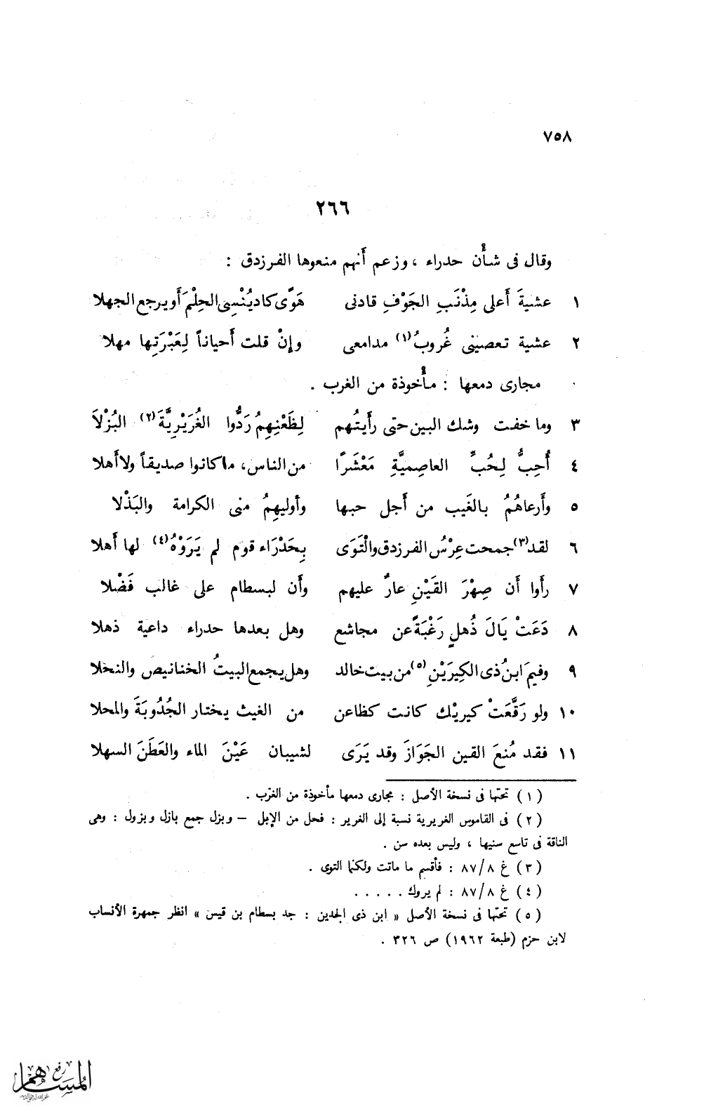 وقال في شأن حدراء، وزعم أنهم منعوها الفرزدق:
