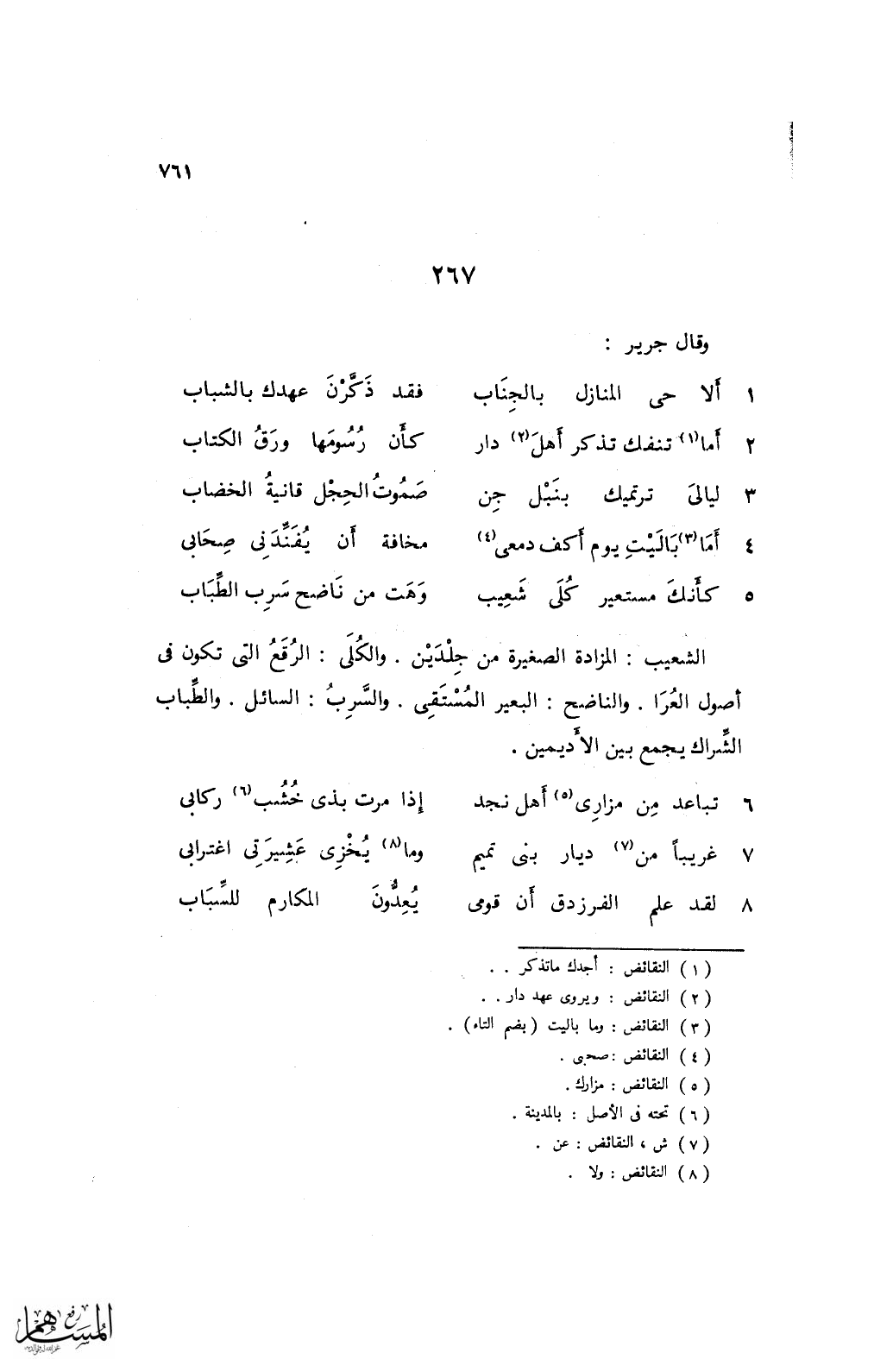 1 ألا حى المنازل بالجناب ... فقد ذكَّرن عهدك بالشباب