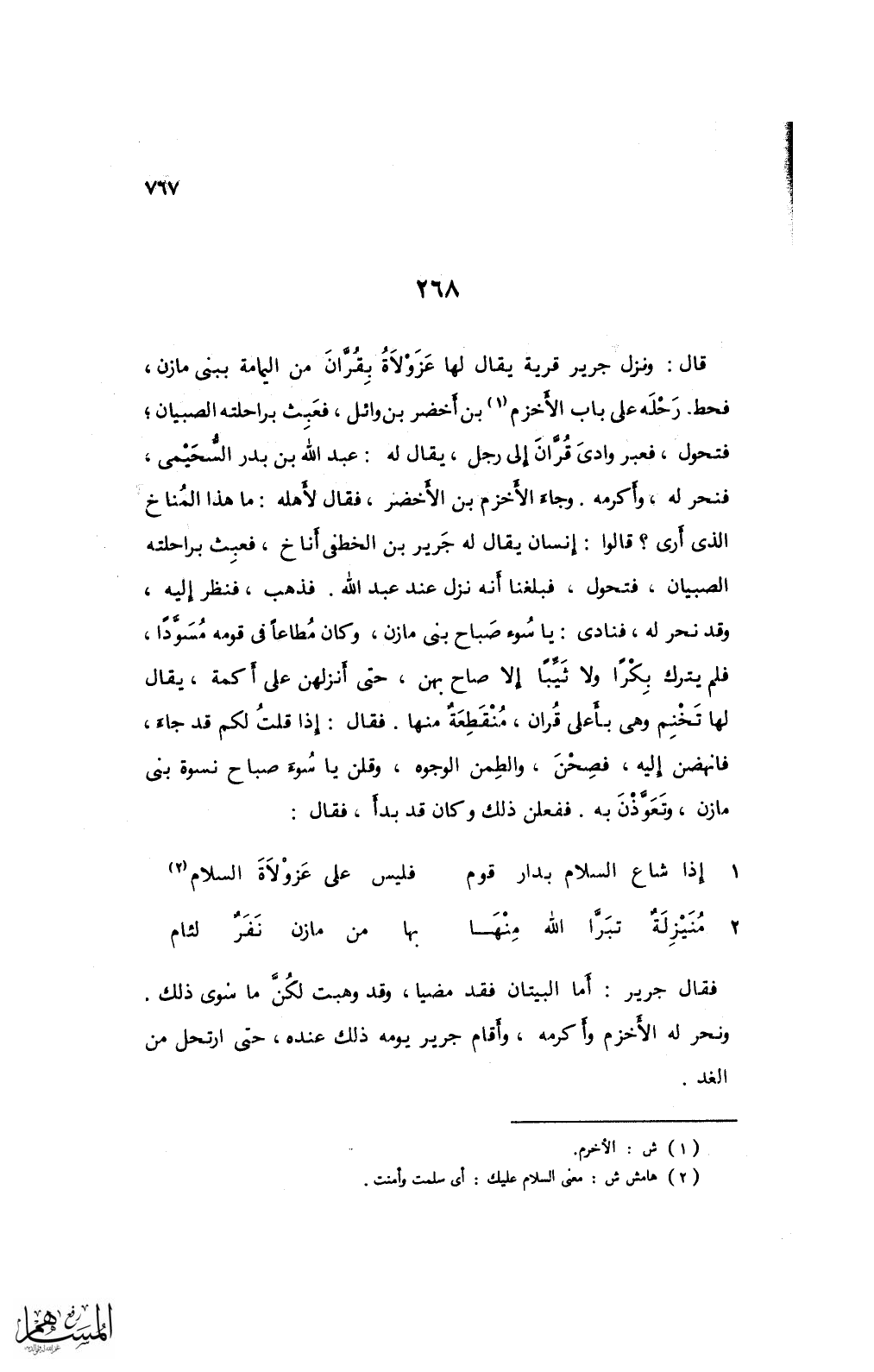 2 منيزلةٌ تبرَّا الله منها ... بها من مازن نفرٌ لئام