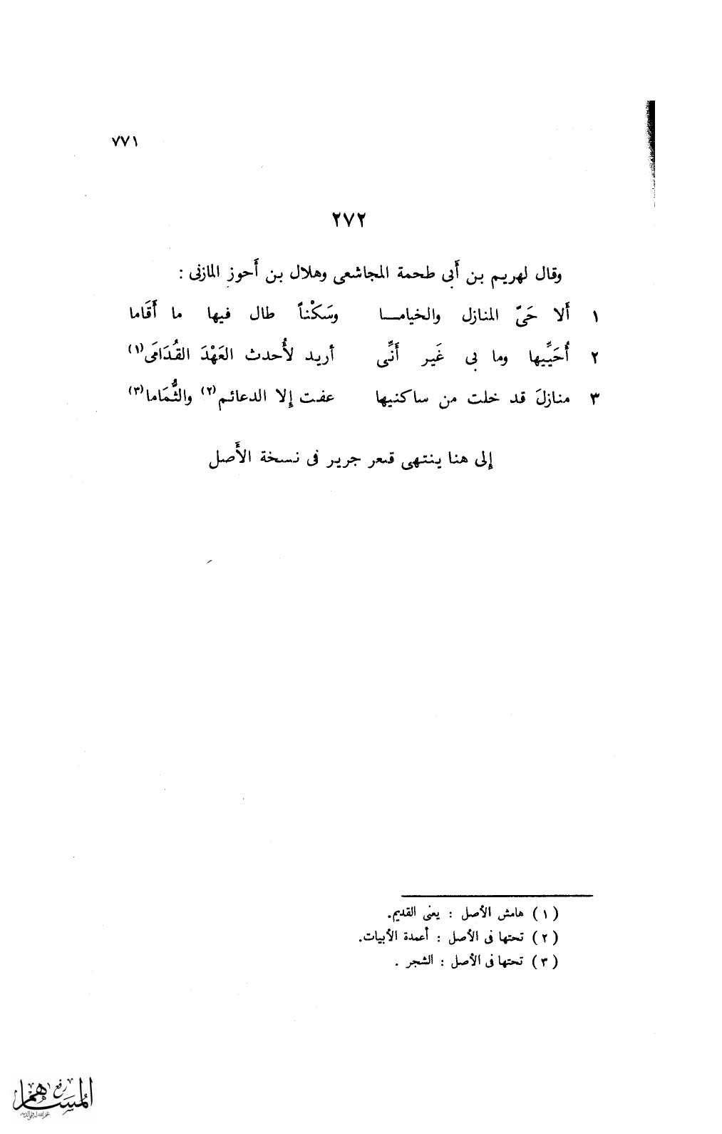 إلى هنا ينتهى قعر جرير في نسخة الأصل