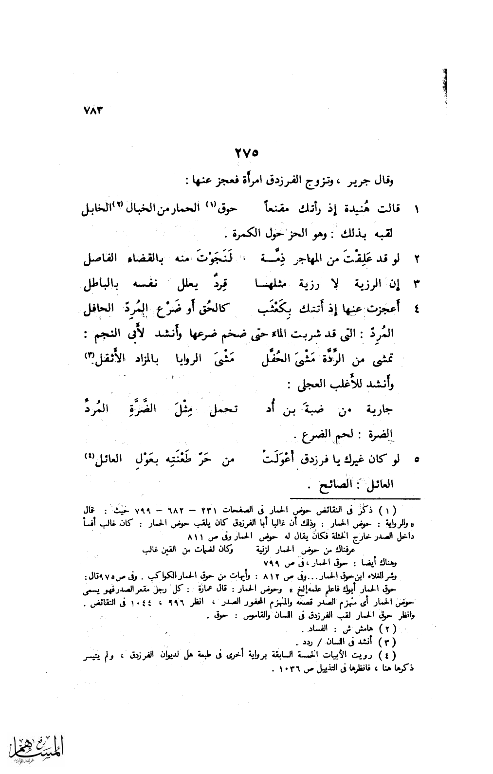 2 لو قد علقت من المهاجر ذمَّة ... لنجوت منه بالقضاء الفاصل