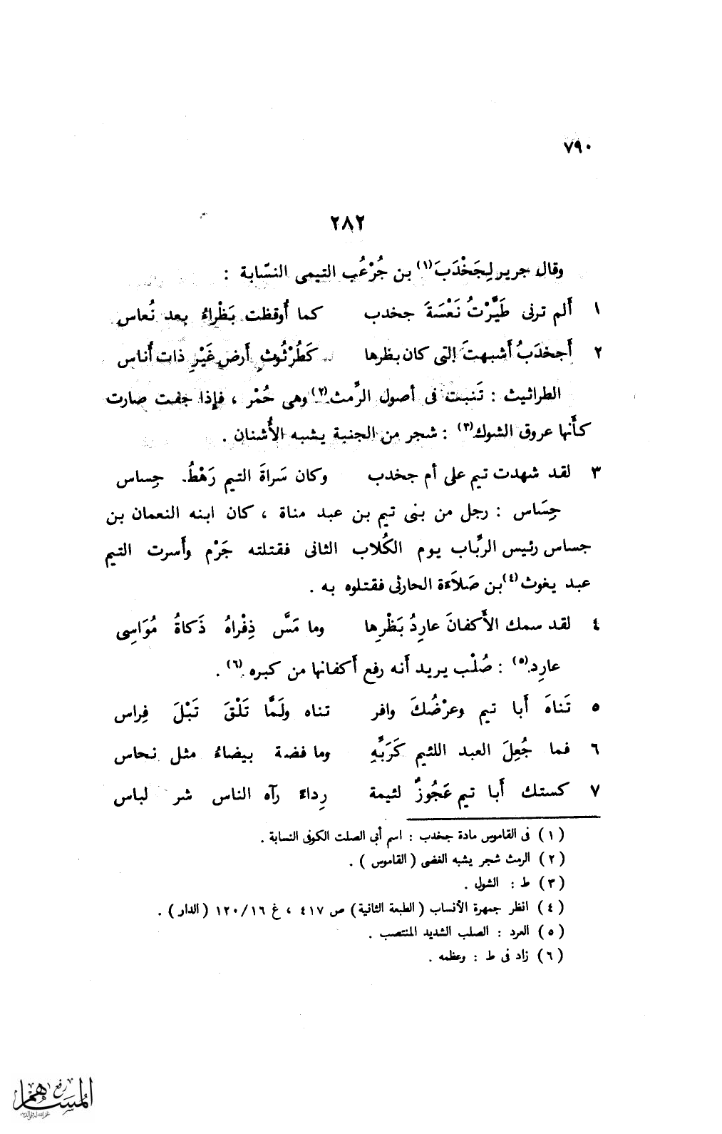 3 لقد شهدت تيم على أم جخدب ... وكان سراة التيم رهط. جساس