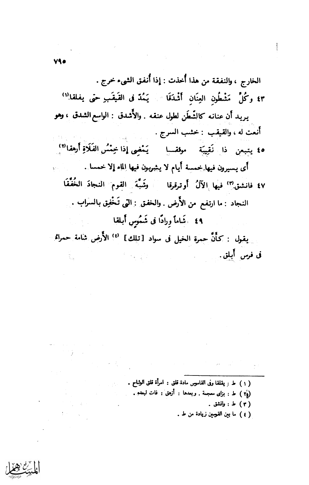 43 وكلِّ مشطون العنان أشدقا ... يمدّ في القيقب حتى يفلقا