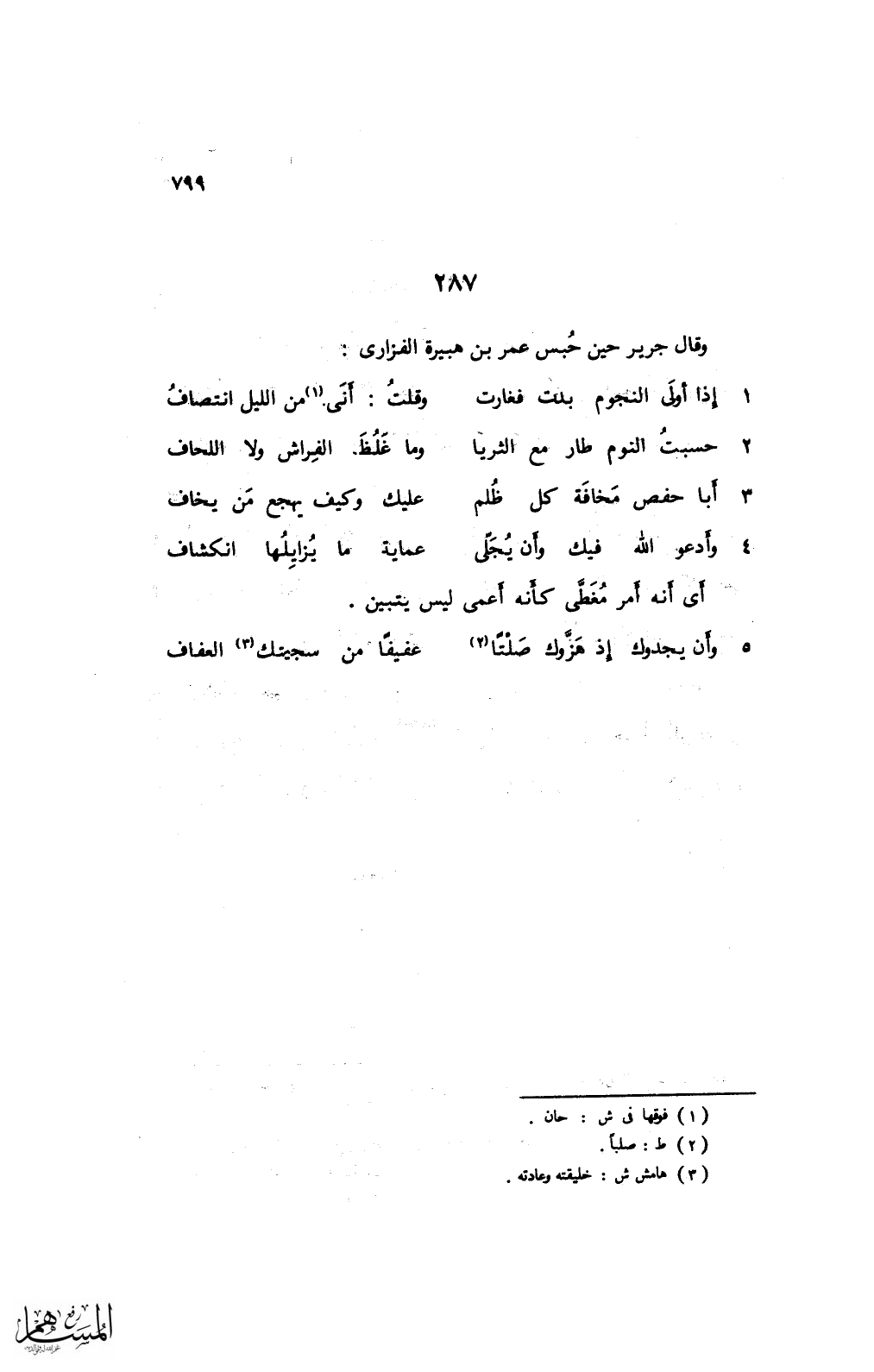 وقال جرير حين حبس عمر بن هبيرة الفزارى: