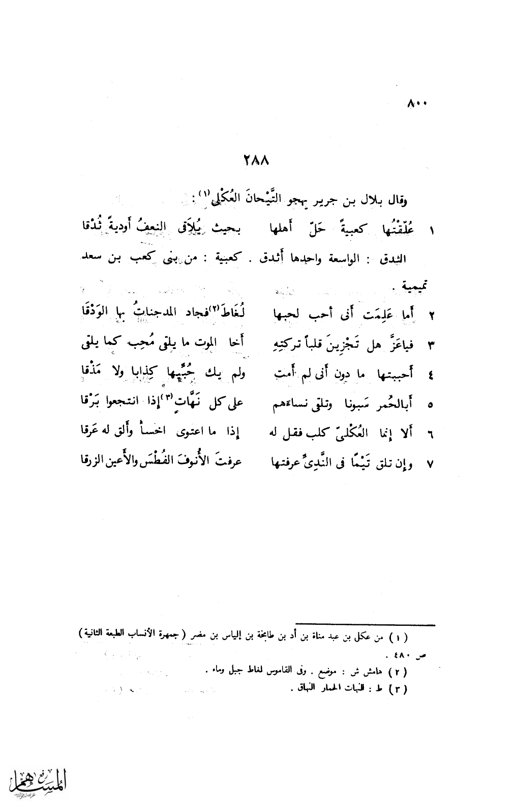 7 وإن تلق تيمًا في الندَّىِّ عرفتها ... عرفت الأنوف الفطس والأعين الزرقا
