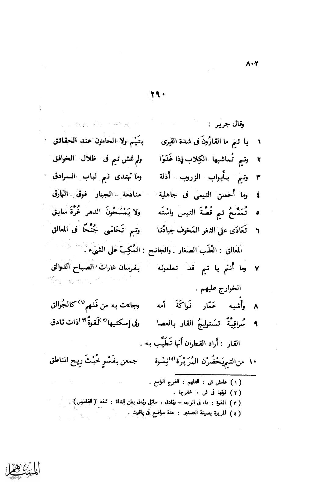 3 وتيم بأبواب الزروب أذلة ... وما تهتدى تيم لباب السرادق
