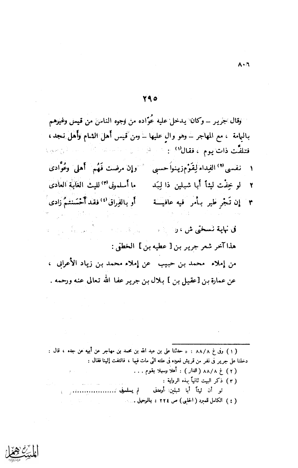 هذا آخر شعر جرير بن [عطية بن] الخطفى: