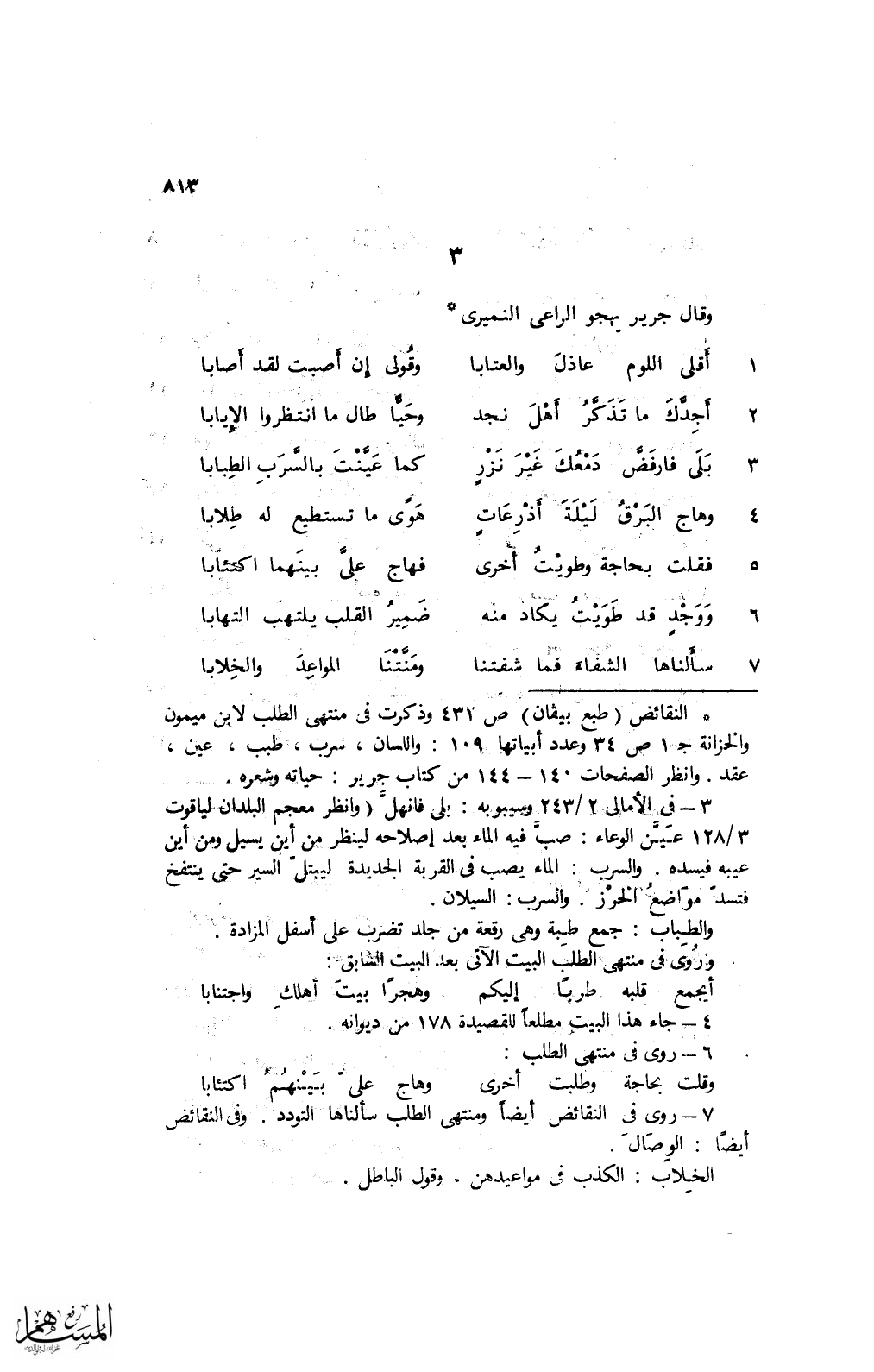 1 أقلى اللوم عاذل والعتابا ... وقولي إن أصبت لقد أصابا