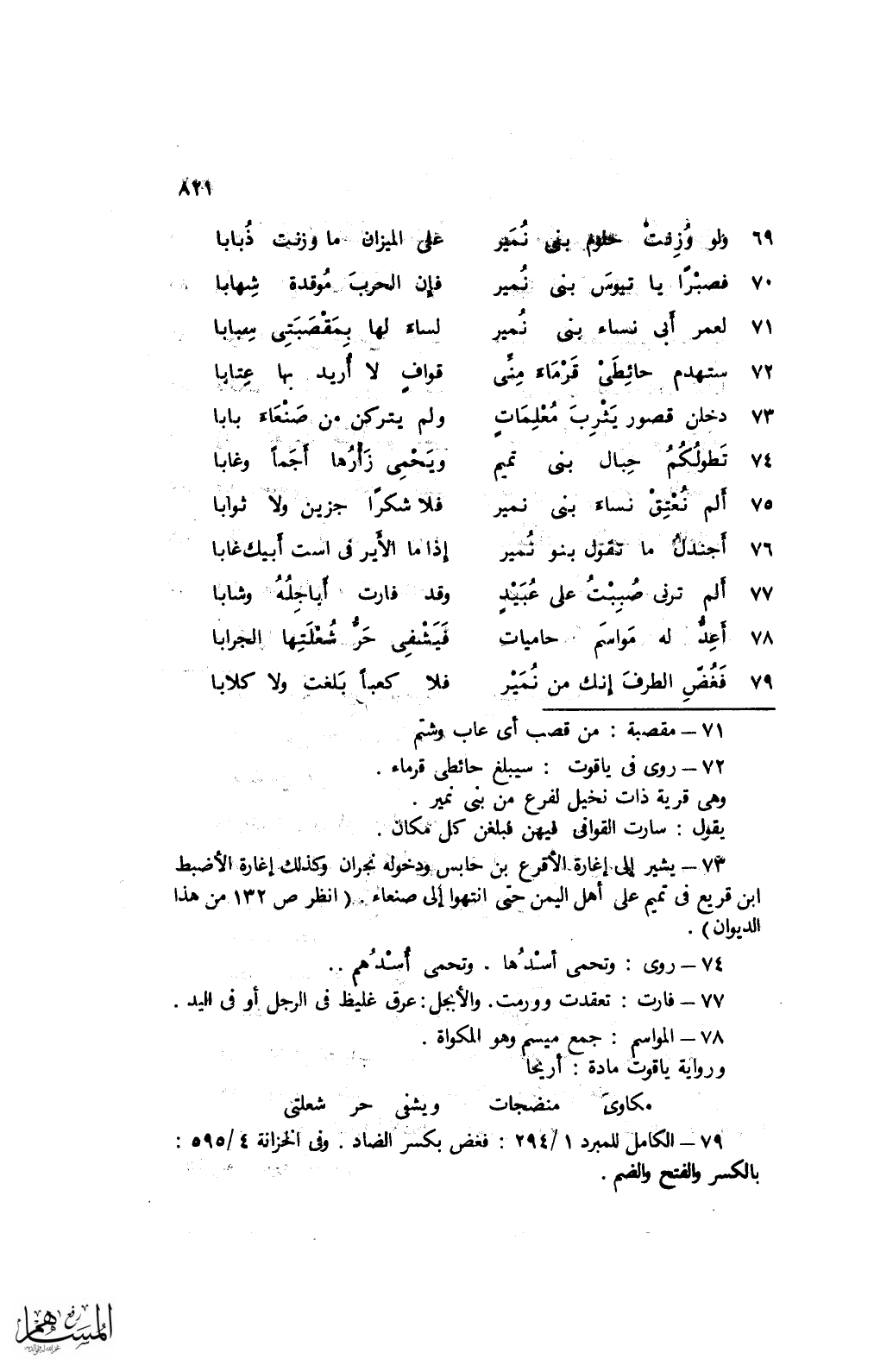 69 ولو وزنت حلوم بني نمير ... على الميزان ما وزنت ذبابا