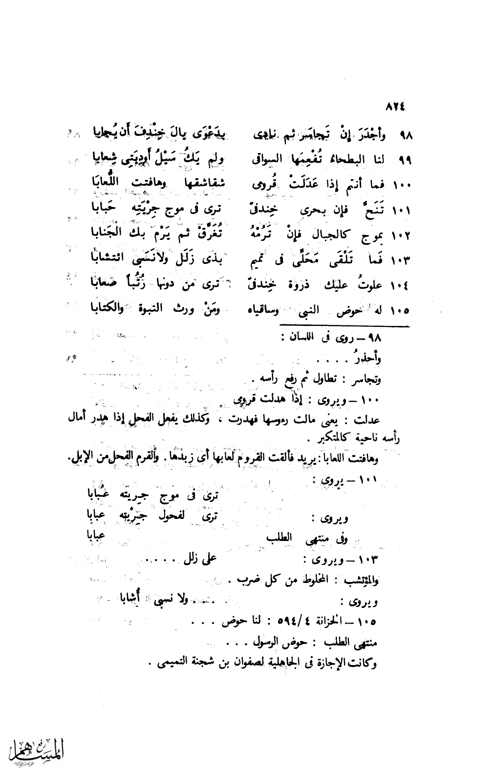 101 تنحَّ فإن بحرى خندفّى ... ترى في موج جريته حبابا