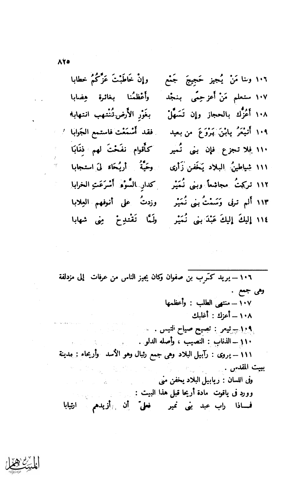113 ألم ترني وسمت بني نمير ... وزدت على أنوفهم العلابا
