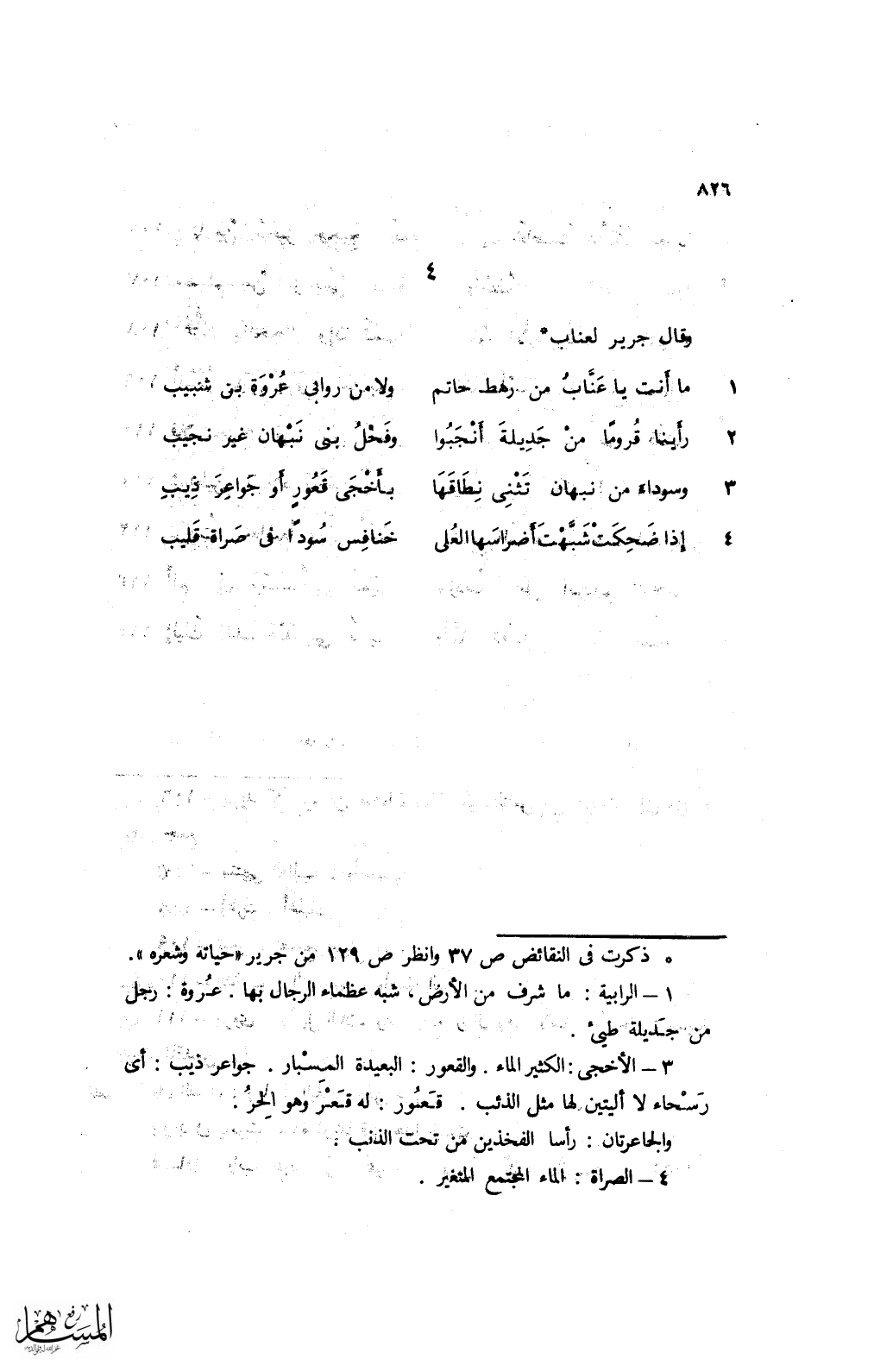 1 ما أنت يا عنَّاب من رهط حاتم ... ولا من روابي عروة بن شبيب