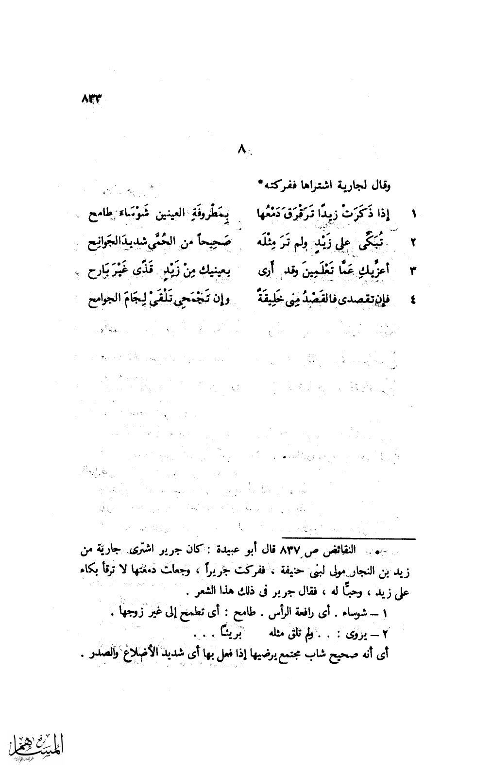 1 إذا ذكرت زبدًا ترقرق دمعها ... بمطروفةٍ العينين شوساء طامح