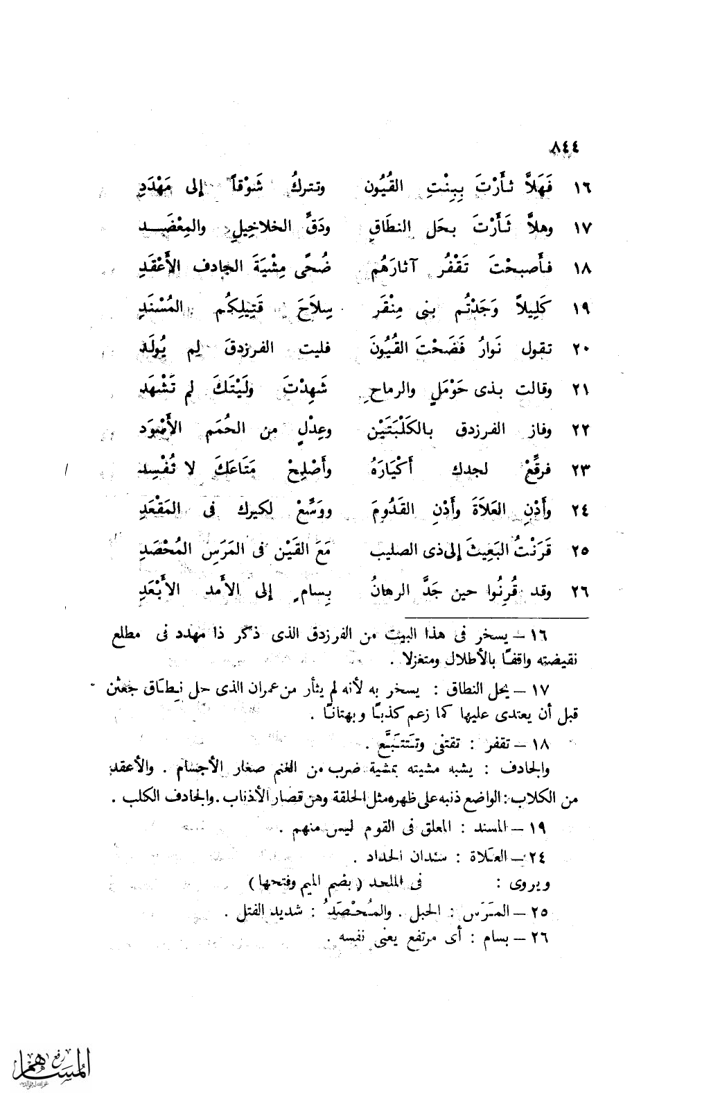 25 قرنت البعيث إلى ذى الصليب ... مع القين فى المرس المحصد