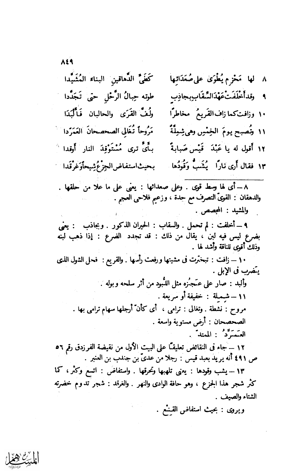 8 لها محزم يطوى على صعدائها ... كطىِّ الدَّهاقين البناء المشيَّدا