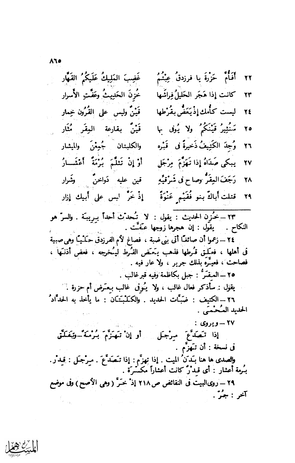 22 أفامَّ حزرة يا فرزدق عبتم ... غضب المليك عليكم القهَّار