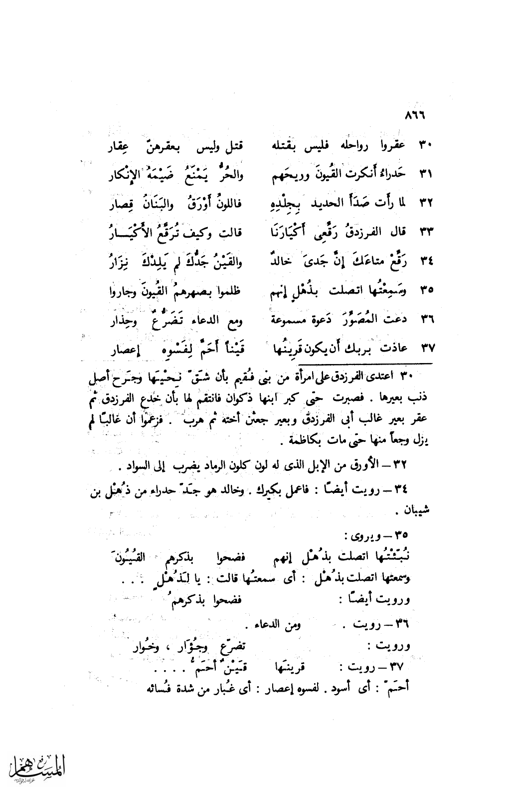 31 حدرائ أنكرت القيون وريحهم ... والحرُّ يمنع ضيمه الإنكار