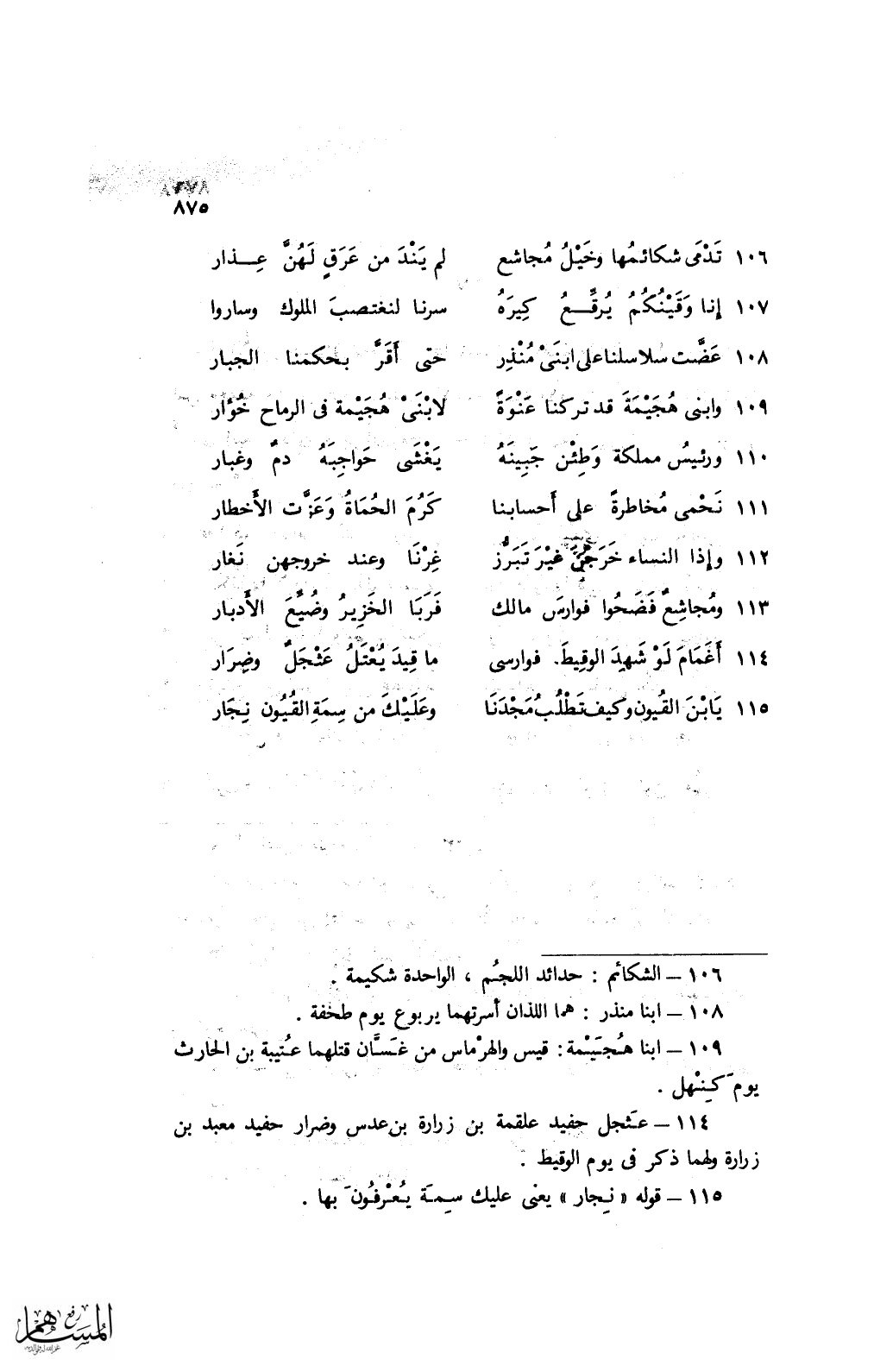 108 عضَّت سلاسلنا على ابنى منذر ... حتى أقرَّ بحكمنا الجبار