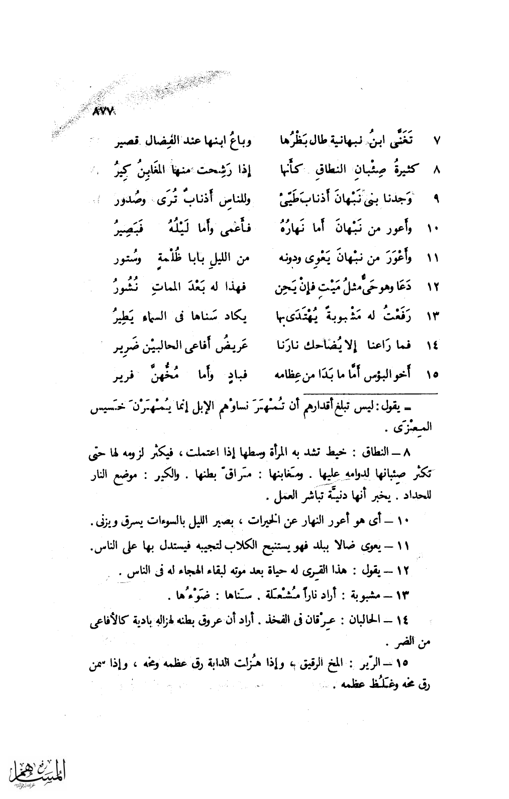 7 تعنَّى ابن نبهانية طال بظهرا ... وباع ابنها عند الفضال قصير