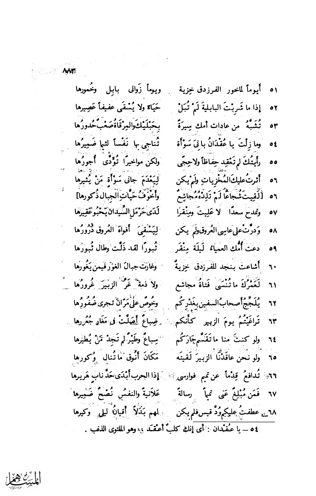51 أيومًا لما خور الفرزدق خزية ... ويومًا زاوني بابل وخمورها