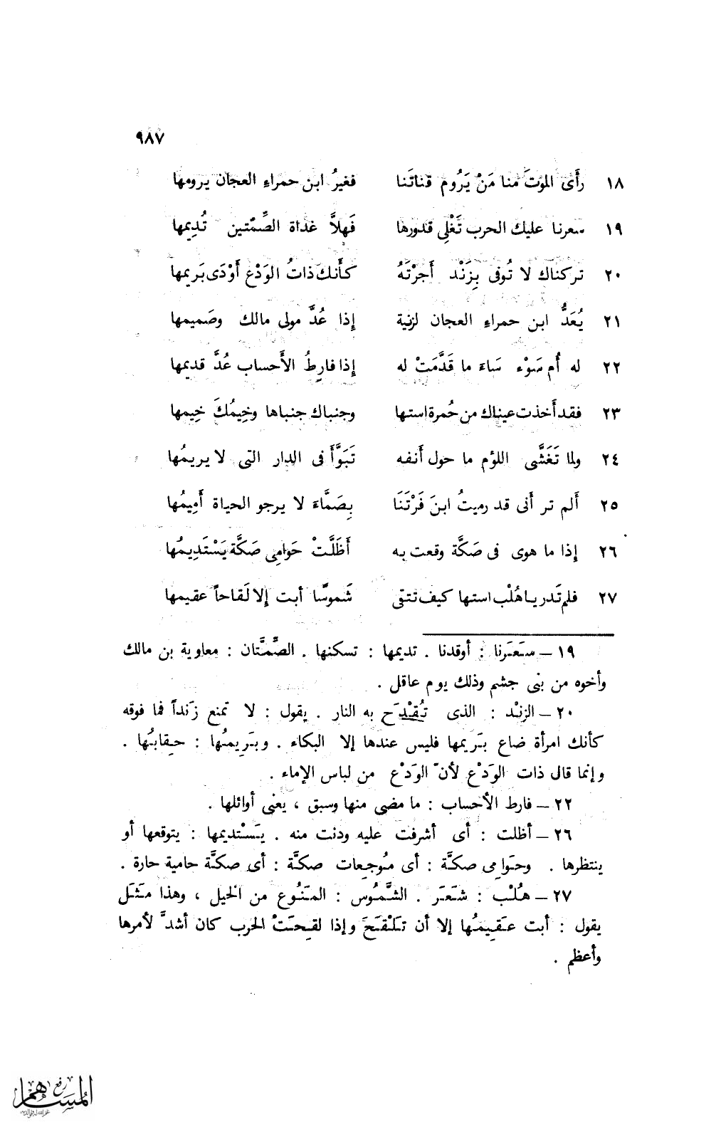 27 فلم تدر يا هلب استها كيف تتقى ... شموسًا أبت إلا لقاحًا عقيمها