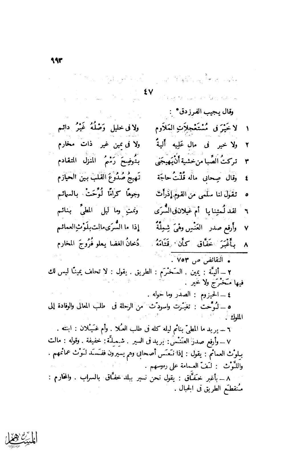 وقال يجيب الفرزدق: