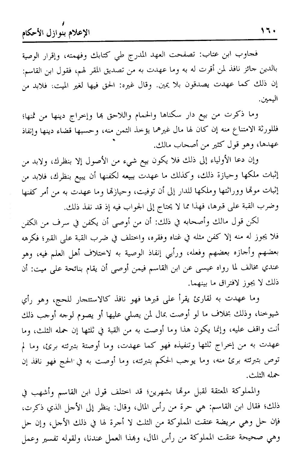 فجاوب ابن عتاب: تصفحت العهد المدرج طي كتابك وفهمته، وإقرار الوصية بالدين جائز نافذ لمن أقرت له به وما عهدت به من تصديق المقر لهم، فقول ابن القاسم: إن ذلك كما عهدت يصدقون بلا يمين. وقال غيره: الحق فيها لغير الميت، فلابد من اليمين.